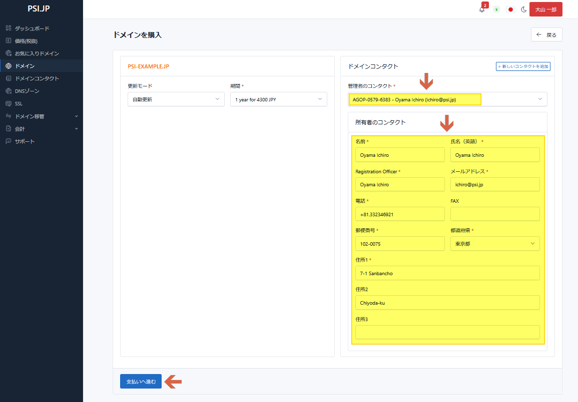 - 管理者のコンタクト(公開連絡先窓口)を選択する。