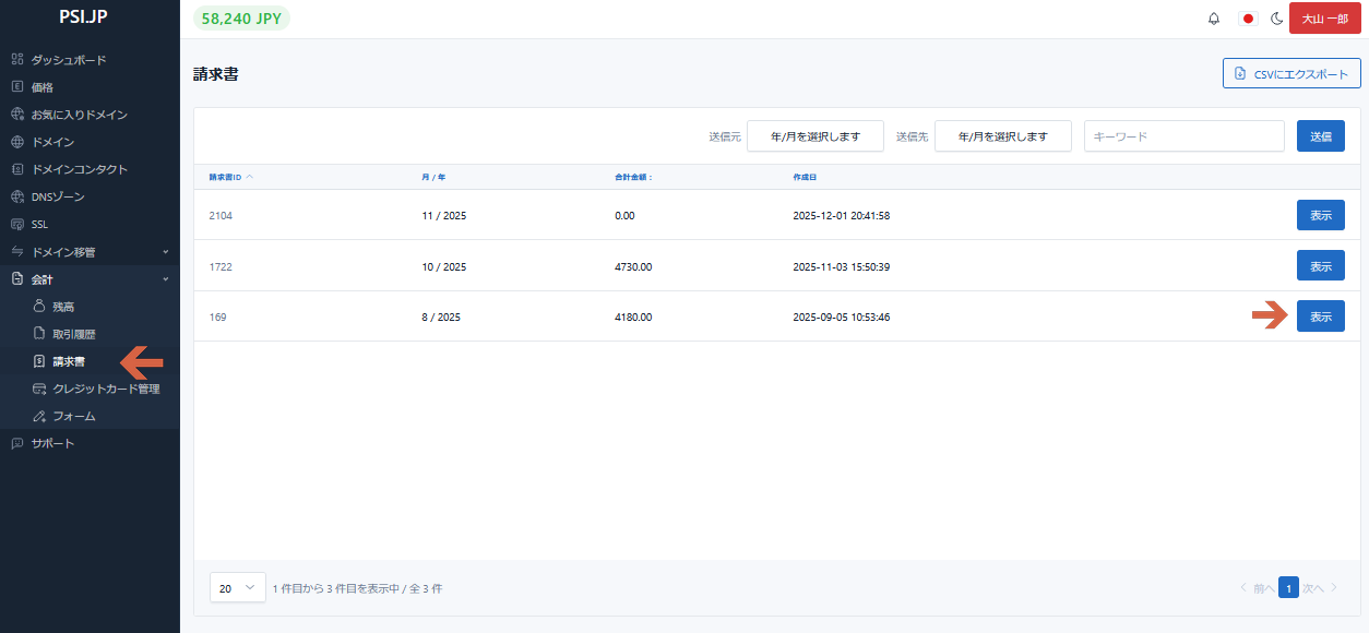 請求書 ページの[表示]ボタンをクリックします。