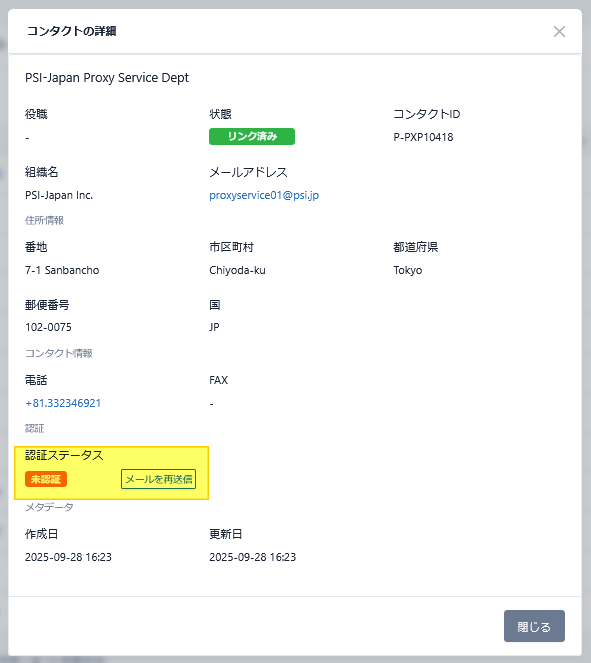 PSI-Japanのシステムは、各コンタクトに対し、連絡先Eメールアドレスの正確性を確認するための通知メールを送信します。