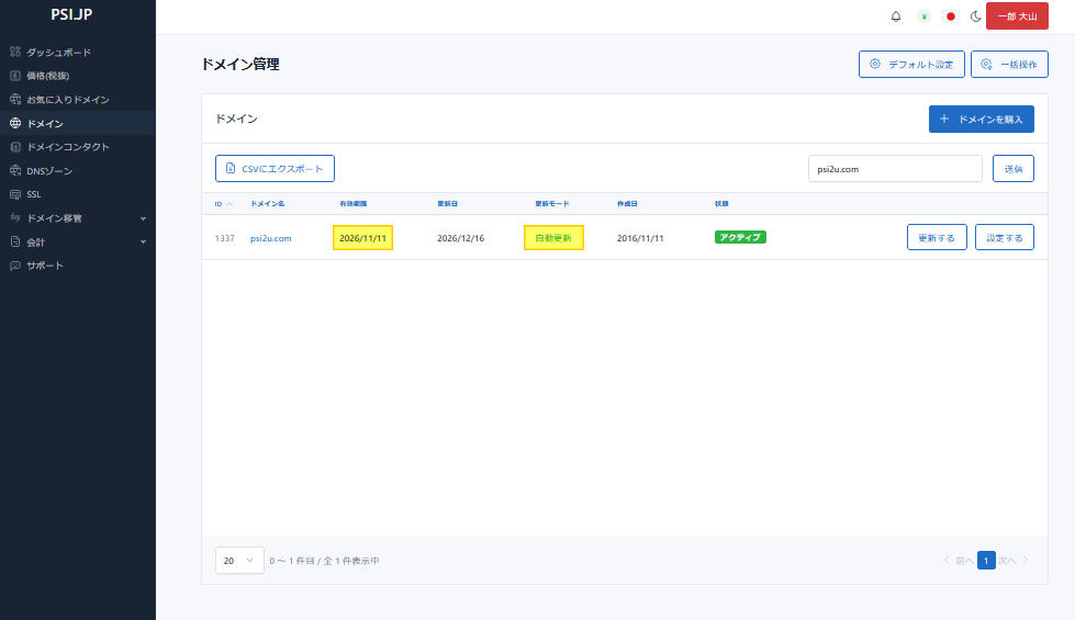 PSI2U.COM(有効期限日:2026-11-11) 自動更新の場合