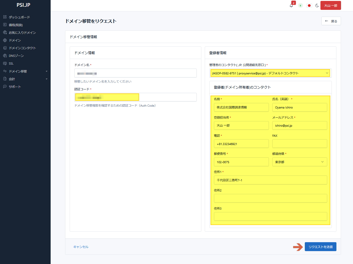 ドメイン名移管(転入) 汎用JP