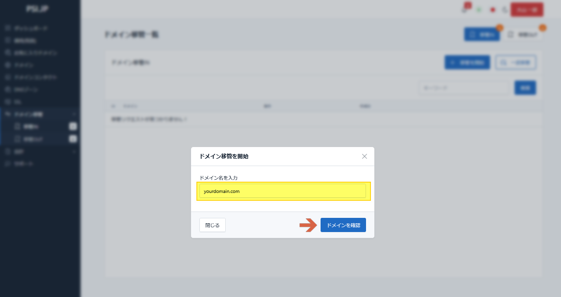◆対象ドメイン名を入力、 [ドメインを確認]をクリックする。
